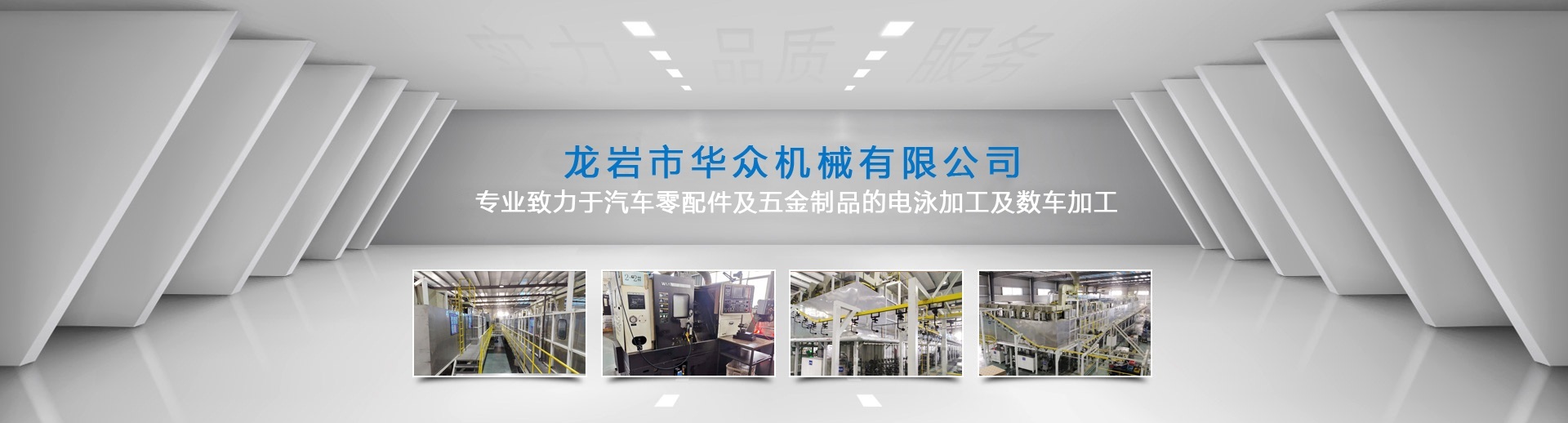 龍巖市華眾機械有限公司網站上線啦!??! 龍巖市華眾機械有限公司前身為龍巖市杰瑞特工貿有限公司,成立于2010年12月。新廠座落于福建省龍巖市新羅區東寶工業集中區,注冊資本500萬元,占地面積約27,000平方米,員工60多人 。公司擁有涂裝行業10年以上工作經驗的技術團隊。2018年8月經NSF-ISR評估獲得IATF16949質量管理體系認證通過并取得證書。 現專業致力于汽車零配件及五金制品的電泳加工及數車加工。